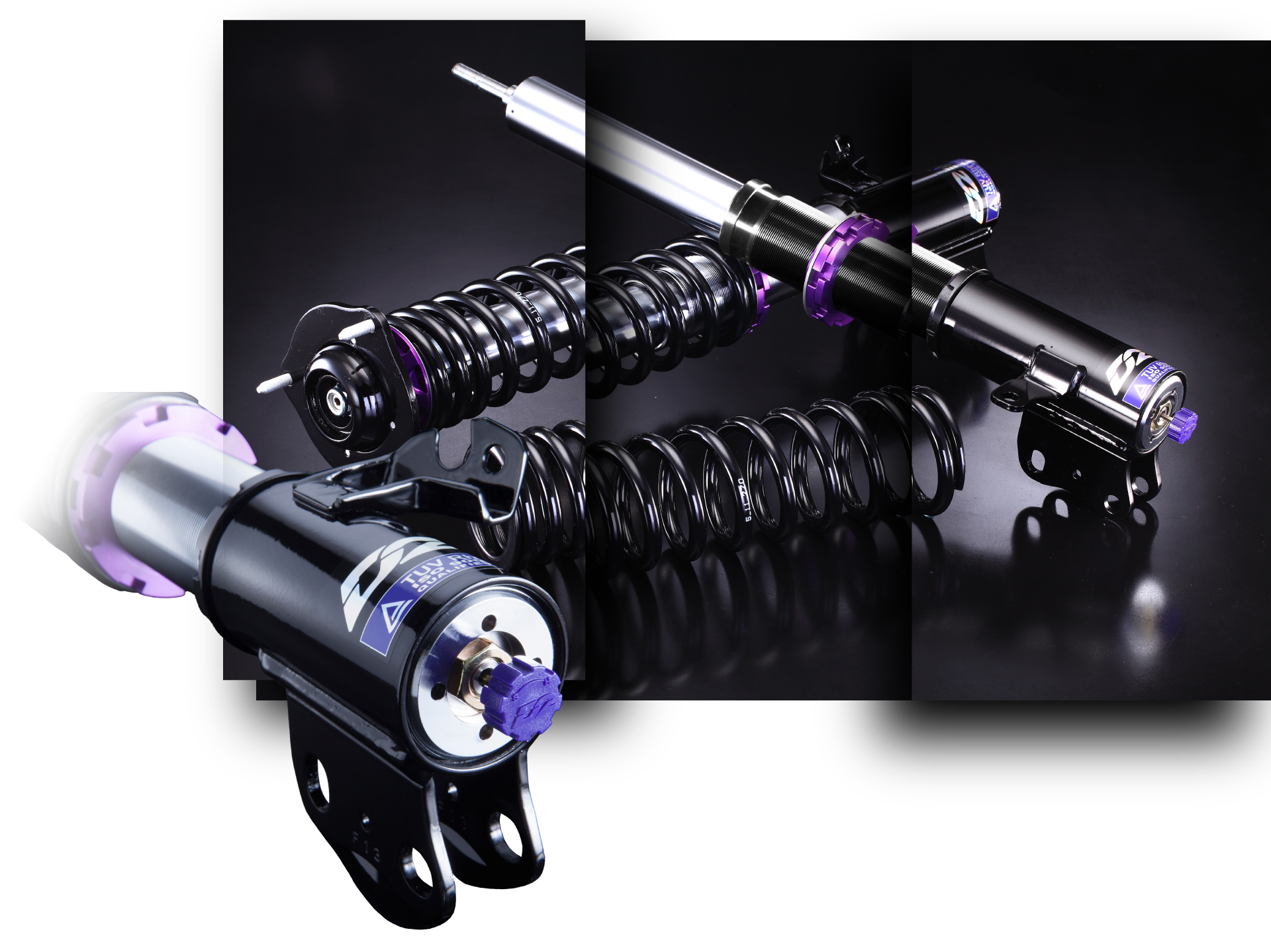 • This unit is for McPherson-Style suspension and features an inverted tube design. 55mm struts can bear outside strike and uneven roads or bumps.